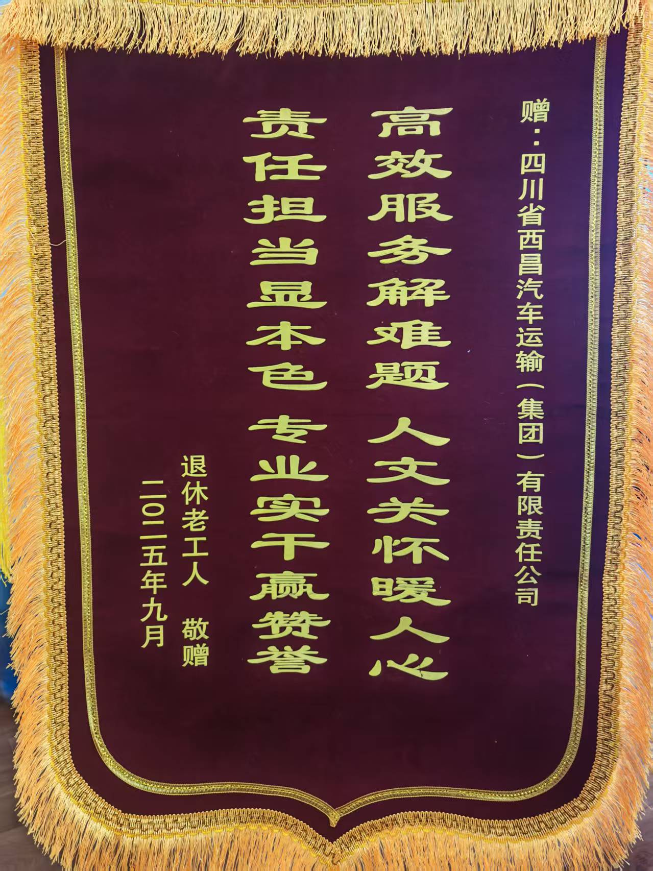 近日,集团下属西运公司原职工代文忠专程来到公司,将一面锦旗送至工作人员手中,对公司协助解决其退休工龄认定问题表达诚挚谢意。