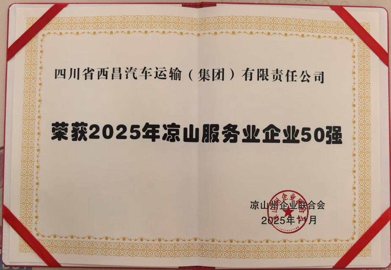 近日,经凉山州企业联合会评定,西运公司获评“2025年凉山服务业50强”荣誉称号。